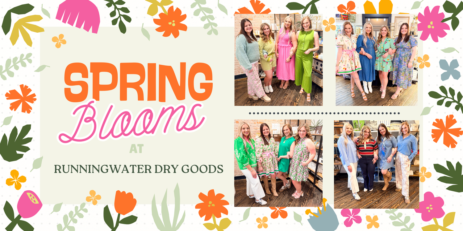 A premiere shopping experience on the Texas panhandle. Runningwater Dry Goods is a mother/daughter run boutique bringing the latest trends and timeless fashion to the Texas panhandle. Located on the historic square in Canyon, TX.